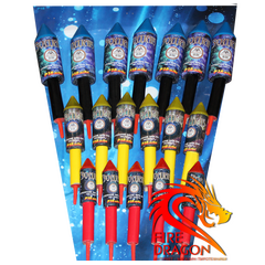 Технічні характеристики ракети SPAIS (RK-2) : Розліт піроелементів у небі до 15 м Калібр 30 мм Висота польоту піроелементів 40 м Кількість пострілів 1 ед Довжина: 800 мм Торгова марка Феєрверк Відео: