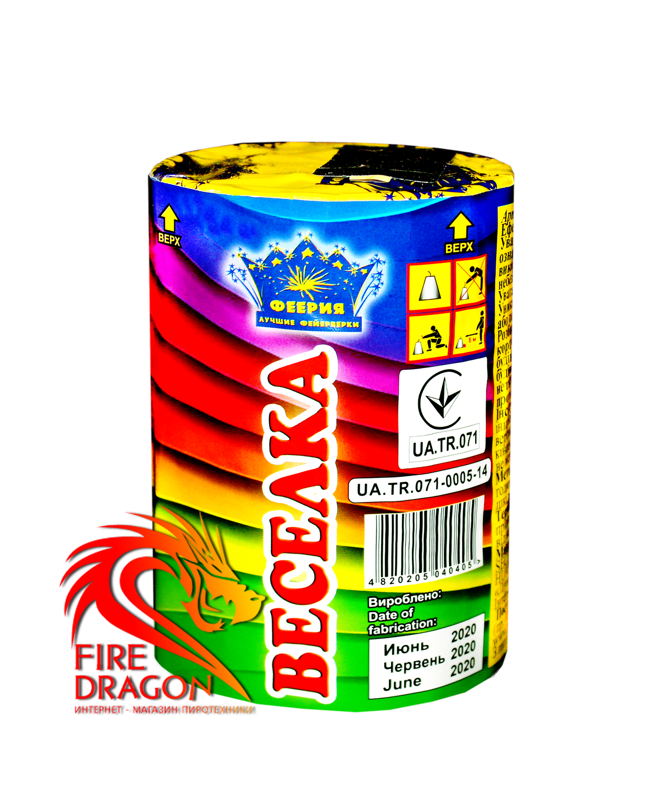 Вулкан Веселка, висота іскор: до 5 м, час: 60 с, ефект: потужний потік золотих іскор з тріском - Арт. F-40