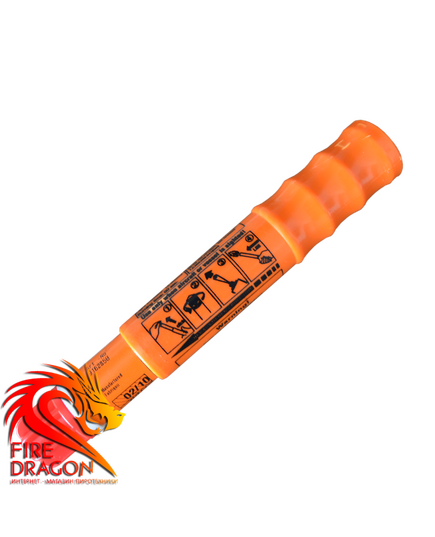 Фальшфеєр із телескопічною ручкою, приводиться в дію ривком шнура, час горіння 60 секунд, колір полум'я: червоний.