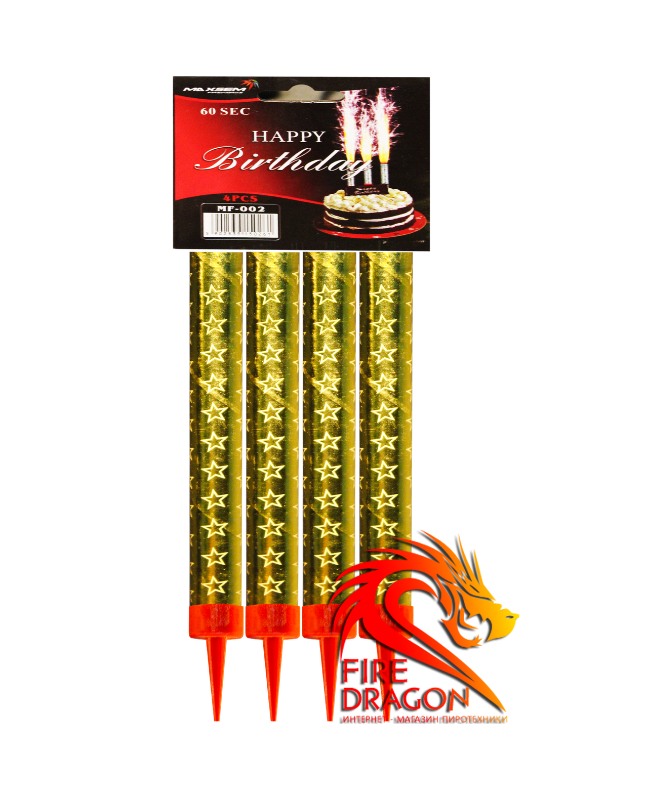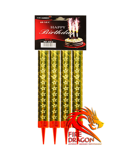 Тортові свічки Happy Birthday MF-002, довжина свічки: 15 см, час горіння: до 60 секунд, колір іскор: золотий - Арт. MF-002