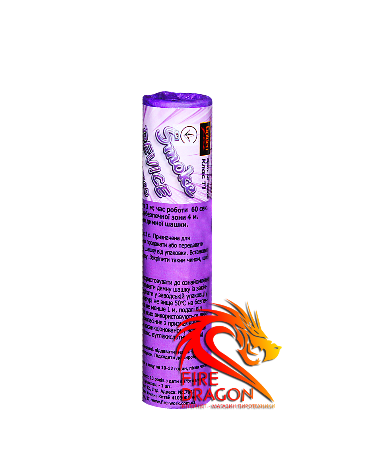 Дим не токсичний, безпечний, сертифікований, густий, не прикрашає одяг*. Колір диму фіолетовий.
