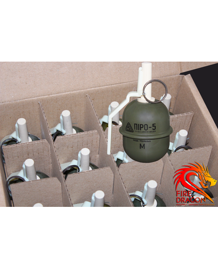 Навчальна, страйкбольна, граната Піро-5 з активною чекою ргд-5, кількість в ящику: 12 штук, наповнювач: крейда - Арт. ПІРО-5МЯ