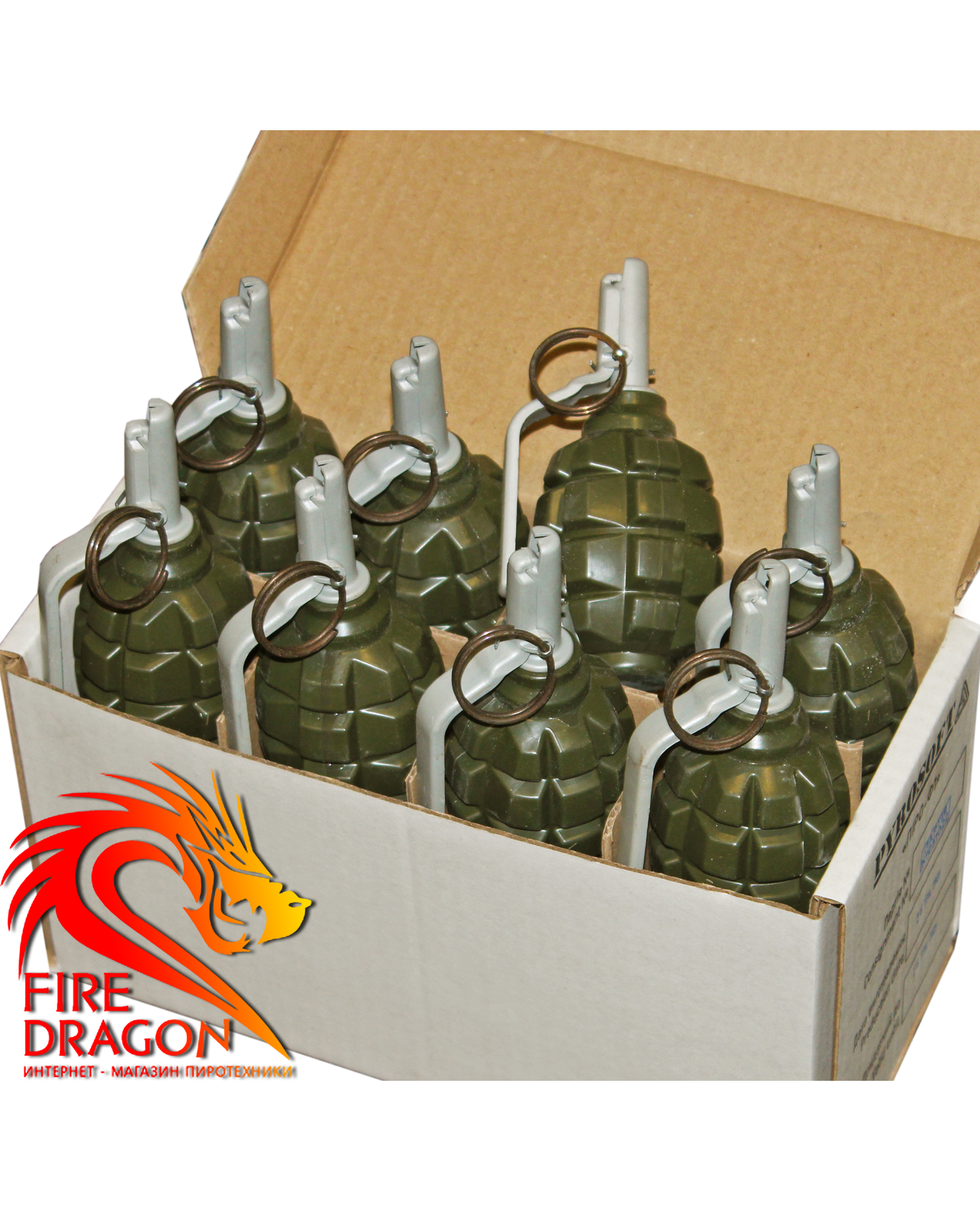 Граната Ф-1, чека: активна, торгова марка: Pyrosoft, кількість в ящику: 8 штук, наповнювач: горох - Арт. Піро-Ф1Г