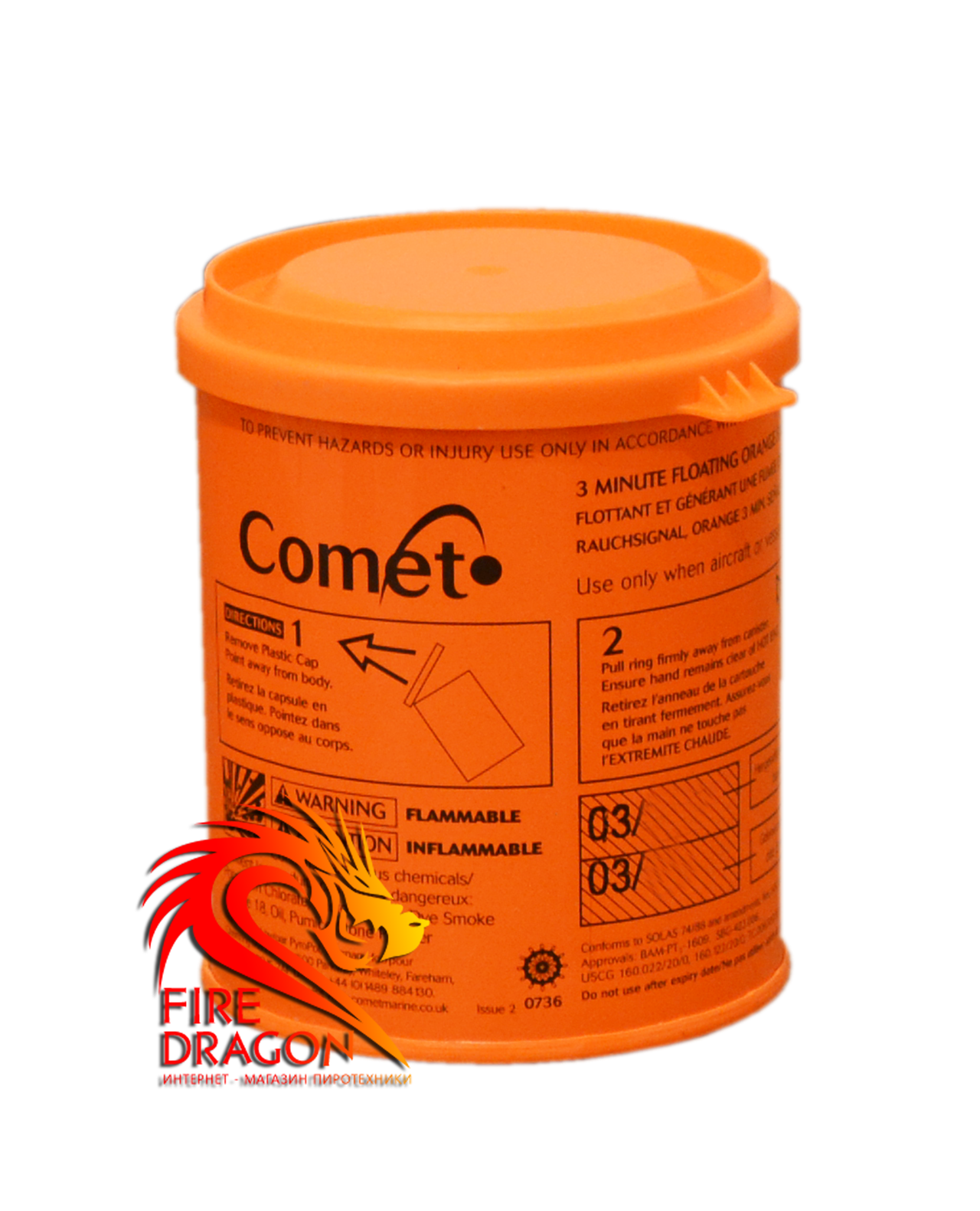 Кольорова димова шашка COMET, час: 3 хвилини, колір диму: жовтогарячий - Арт. ПДШ-02